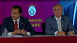 ISTANBUL, TURKEY - JULY 8: Turkish soccer team Galatasaray's new head coach Italian Cesare Prandelli (L) holds a press conference after signing a two-year contract with Galatasaray at Turk Telekom Arena Stadium in Istanbul, Turkey on July 8, 2014. Footage by Sinan Sariyar / Anadolu Agency