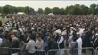 Birmingham riots: Twenty thousand people attend funerals for three men killed during riots; ENGLAND: West Midlands: Birmingham:EXT*** Funeral music and singing heard over following shots SOT ***Huge crowd of mourners gathered at outdoor funeral service for Haroon Jahan, Shazad Ali and Abdul Musavir (three young men hit by car during recent rioting in Birmingham)Close shots of mourners Hearse with flowers reading 'Shaheed'Family members following coffin - elderly man in tearsClose shots of mourners in crowd as listening to Saqib Majid funeral address SOTSaqib Majid (Cousin of two of victims) addressing mourners from stage SOTTariq Jahan (Haroon Jahan's Father) hugging othersSheikh Muhammad Yaqoubi addressing mounrers from stage SOTClose shots of mourners in crowd