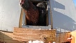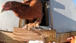 Two Chickens Leave Coop on Snowy Winter Day - 4K stock video