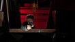 Two henchman crouching behind a dumpster take aim and fire their weapons. One of the henchman is wearing a gas mask because of the tear gas in the air. The other henchman is has a ski mask. He gets shot and falls back. The background is lit with Hong Kong red. Shot in slow motion on an HVX200 in 720p in 24fps.