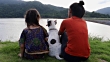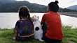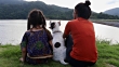Two owner and funny american bully dog in the relaxing time - HD stock video