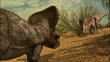 CGI, MS, Two Protoceratopses on sand dune - HD stock video