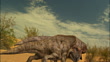 CGI, MS, Two Protoceratopses on sand dune - HD stock video