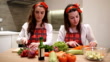Two sisters preparing vegan meal at home, vegan family dinner - 4K stock video