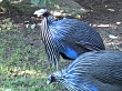 Two Vulturine Guineafowls (Acryllium vulturinum) in the park.