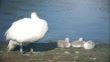 Three cute little ugly ducklings sleeping in the sun at a lake in Copenhagen. The swan is the national bird of Denmark.