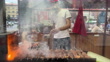 Kazakh man barbecuing meat on the street of Ulaanbaatar.