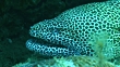 Underwater CU Honeycomb Moray Eel hiding in crevice in reef - HD stock video