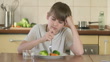 Unhappy boy refusing to eat vegetables - 4K stock video
