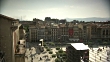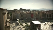 HA WS PAN (R) Unidentifiable people milling about square below amid surrounding buildings of baroque architecture, bandstand in center, Pamplona Cathedral