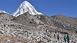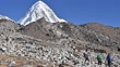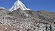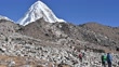 Unidentified tourist while trekking on the way to Everest Base Camp in Nepal with beautiful view of Mt.Pumori (7,161 m). - HD stock video