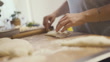 Close up shot of an unrecognizable woman kneading the dough on the work table in her kitchen. She is preparing an Italian pizza called Panzerotti
