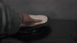 Video shot of unrecognizable man cooking tortilla (flatbread) on flat pan