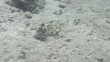 An Upside Down Jellyfish (Cassiopea andromeda) swims through clear, tropical water and settles itself in the sand. It's pulsating blue-tinged bell and white tentacles can be clearly seen. The shadow of the jellyfish's medusa appears on the sand just before it gracefully lands. This jellyfish prefers to sit on the bottom rather than swim.