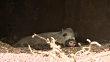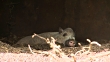 A bearded pig goes in and out of focus at London Zoo as it relaxes in the shade during a heatwave