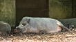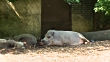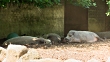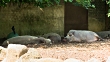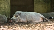 Bearded pigs at London Zoo lying in the shade during a heatwave