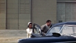 1949 medium shot Loretta Young walking from car at airport and posing for CAM