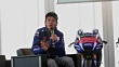 Valentino Rossi answers a question about how his rivals will perform on Michelin tires during a Yamaha MotoGP team presentation on January 18, 2016 in Barcelona, Spain.