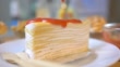 Vanilla crape cake topping with strawberry sauce, dessert tasy cake. - 4K stock video