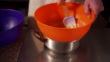 Professional dessert chef mixing vanilla cream in a mixing bowl