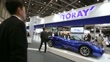 Various shots visitors look at a Toray Industries Inc. Teewave AR1 concept electric vehicle, which utilizes the company's green innovation (GR) product including advanced environment friendly materials and technologies, manufactured by Gordon Murray Design Ltd., which sits on display at Automotive World 2014 in Tokyo, Japan, on Wednesday, Jan. 15, 2014, Close shot a Renesas Electronics Corp. inverter for switched reluctance (SR) motors, A visitor looks at Renesas display stand, Pan Renesas sign, A Range Rover sport utility vehicle (SUV), produced by Jaguar Land Rover Plc, a unit of Tata Motors Ltd., equipped with Valeo Japan Co.'s Scala laser scanner, sits on display Various companies at the Automotive World 2014 on January 15, 2014 in Tokyo, Japan (Footage by BBV/Getty Images)