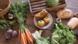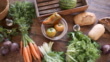 Vegan meal still life on a wooden table. - 4K stock video