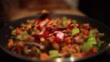 Woman is preparing dinner at her home, cutting the vegetables for the vegan couscous with different oriental spices.