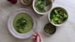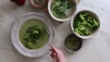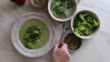 Vegetarian creamy broccoli soup with pumpkin seeds and basil - HD stock video