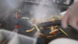 Close-up shot of an unrecognizable chef making vegetarian meal on a flat top griddle plate.