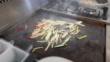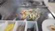 Close-up shot of an unrecognizable chef making vegetarian meal on a flat top griddle plate.