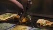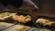 Vendor rolling crispy Taiwanese scallion pancakes sizzling griddle Street food - 4K stock video
