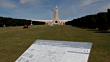 Douaumont, France - June 08, 2017: Wide angle view of the Douaumont ossuary memorial in the background, in the foreground a map and an explanation about the memorial can be seen. The Douaumont ossuary for the over 130000 not identifiable french and german soldiers who died in World War I on the Verdun battelfield. The village Doumamont does not exists anymore and was not rebuilt after the war. It is 5 km away from Verdun.
