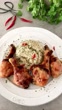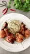 Vertical food fried chicken risotto preparation blog montage for social media - 4K stock video
