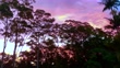 Horizontal landscape of vibrant sunset sky against outline silhouette of palm and eucalyptus trees in country backyard at Bangalow near Byron Bay Australia