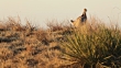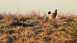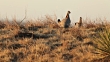 At sunrise in the Sand Hills just outside Wray, Colorado, a male greater prairie chicken stands on a parade ground or lek in a springtime mating ritual. Males fill their orange sacs on the sides of their throats with a booming sound and dance for the inspecting female chickens. The species in considered vulnerable.