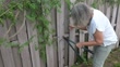 Video of Senior Hispanic Woman Gardening in Back Yard in Orlando Florida - 4K stock video