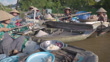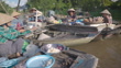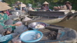Vietnamese woman preparing coconut's snacks, floating market, Mekong River Delta, Vietnam - 4K stock video