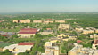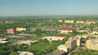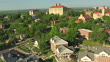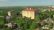 MS AERIAL View of cityscape with flyover University of Kansas campus buildings / Lawrence, Kansas, United States - HD stock video