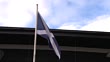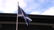 View of flag of St Andrew on His Masjestys Frigate Unicorn, berthed in Dundee City Quay. Launched in 1824, she is now the largest intact warship from the days of sail. She is one of the six oldest ships in the world and the only representative of Scotland for the sailing navy. Dundee is the fourth largest city in Scotland with a population of some 130,000. It was once a major centre for producing jute, marmalade and ships as well as supporting industries like whaling and publishing. Biomedical and technological industries arrived in the late 1980s, and the city now accounts for 10 per cent of the digital-entertainment industry in the UK. Dundee City Quay St Andrew flag at Dundee City Quay on October 05, 2013 in Dundee, Scotland (Footage by First Freedom/Getty Images)