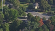 WS AERIAL POV View of Minuteman Statue and cars moving on street / Lexington, Massachusetts, United States - HD stock video