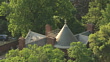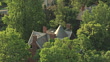 CU ZO AERIAL View of roof of Historic Perkins House at John Browns Hanging Site and tree tops in Charles Town in Jefferson County / West Virginia, United States - HD stock video