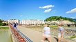 Beautiful view of Salzburg skyline with Festung Hohensalzburg and Salzach river in summer, Salzburg, Salzburger Land, Austria, 4K 3840x2160 Format
