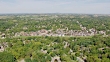 WS AERIAL POV View of townscape surrounded by tree / Galena, Jo Daviess County, Illinois, United States - HD stock video