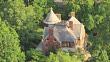 MS ZO AERIAL View over roof of Historic Perkins House at John Browns Hanging Site and Charles Town in Jefferson County / West Virginia, United States - HD stock video
