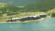WS AERIAL View over Swift current Lake and Many Glacier Hotel in Glacier National Park / Montana, United States - HD stock video