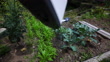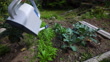 POV view watering vegetable garden with watering can - HD stock video