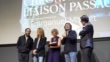 FLORENCE, ITALY - OCTOBER 29: (SPEECH) (L-R) Vincent Macaigne, Sandrine Kiberlain, guest, director Emmanuel Mouret and Francesco Ranieri Martinotti speak on stage during the 14th France Odeon 2022 on October 29, 2022 in Florence, Italy. (Footage by Davide Lamazzi/Getty Images)