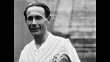Vintage tennis featuring Jean Borotra of France, beginning with a headshot of him looking towards the camera followed by some action sequences, circa 1925