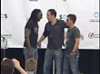 Violinist Boyd Tinsley, singer and guitarist Dave Matthews, and bassist Stefan Lessard of the Dave Matthews Band at the Live Earth New York press room at Giants Stadium in East Rutherford, New Jersey on July 7, 2007. (Footage by WireImage Video/Getty Ima
