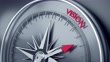 Vision text is in focus on three dimensional realistic compass's needle. High quality image is ready to crop all your social media sizes with copy space.